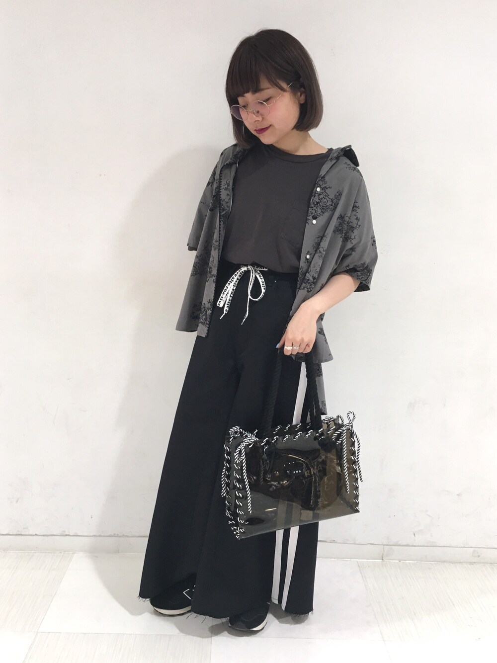 オールブラックコーデ🐼🖤 夏ですがブラックもかっこよくて外せないアイテムです!! このスーパーワイドパンツ、スカートのような広がりと、キュッと締まるウエストで、脚長効果抜群です🔥🔥 Instagram🍇ozakeru0707