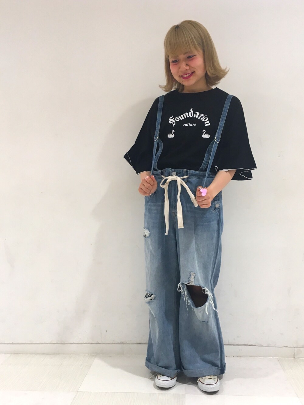 kaorinのデニムパンツ「R3314 サスペンダーワイドデニム」を使ったコーディネート