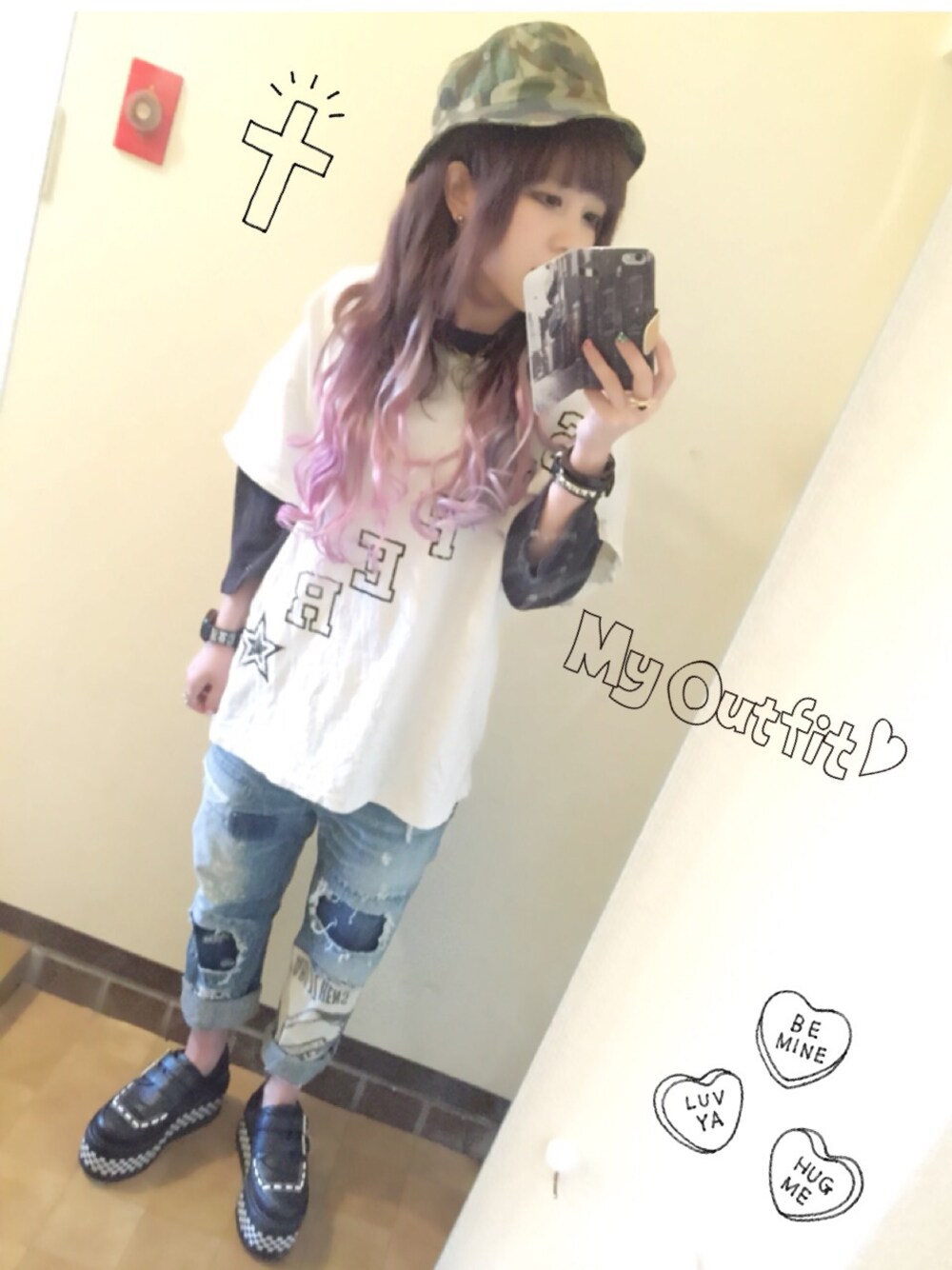 NaruMiiのデニムパンツ「R2727 カットソーパッチリメイク風デニム」を使ったコーディネート