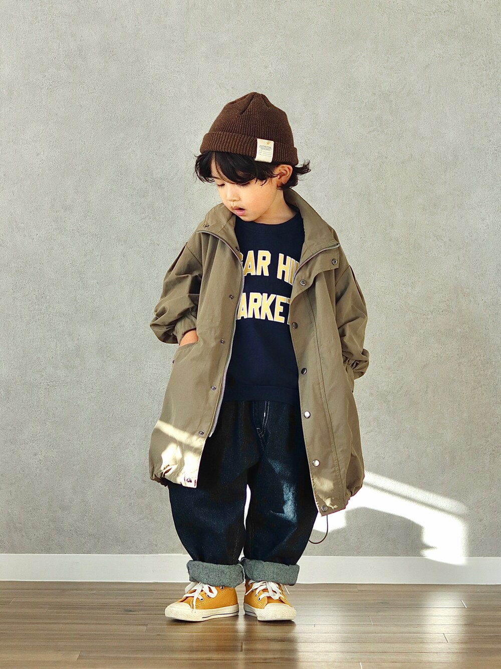 ORITSUのニットキャップ/ビーニー「カラーニットワッチ」を使ったコーディネート