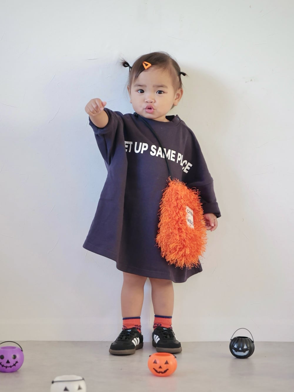 このワンピース安いしかわいいので おすすめですー♥♥ 色違いも買おうかな。🤩 ネイビーだったのでオレンジバッグの ワンポイントを入れたら、 ハロウィンぽくなったので 小物は全部オレンジにしました🤗 今更だけど白黒ボーダーレギンス 履いてもよかったな~😏 靴下は西松屋🤣 まだあるかわかんないです🙏 プチプラ×プチプラじゃない を合わせたら完成~🎃👻 プチプラワンピースも高見えです🤗