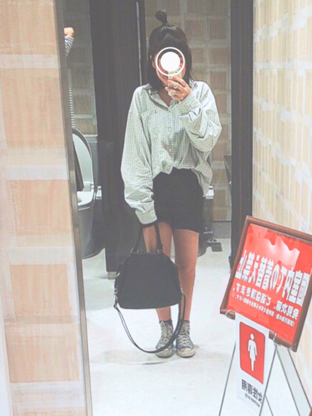 兄のL sizeシャツを借りて、ダボッとルーズなシャツコーデ😝