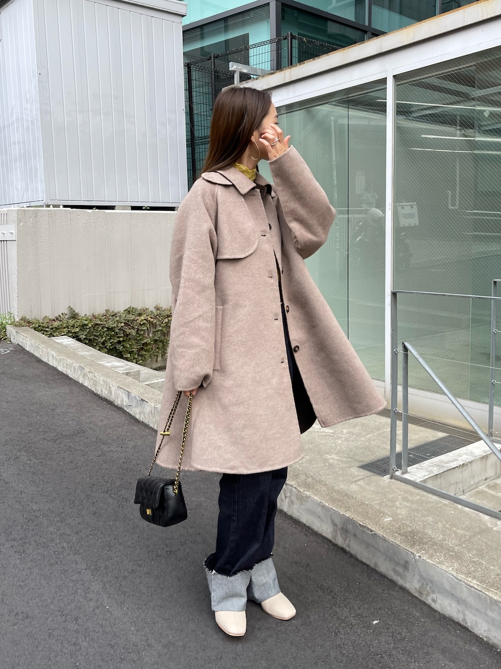 テントラインコートが主役のコーデ。 シンプルなトップスとパンツに 羽織るだけでサマになるアイテムです!
