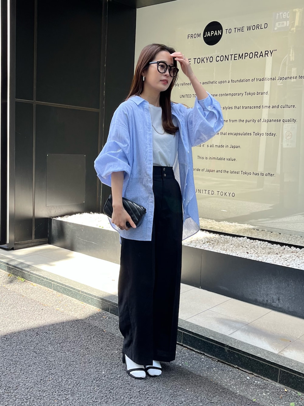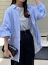 エアリーコットンバックオープンシャツ を使ったストライプシャツコーデ シャツは名前の通り とても軽い着心地で 夏までおすすめのアイテムです! 合わせるパンツは大人シンプルに リネン混のスラックスパンツにしてみました◎