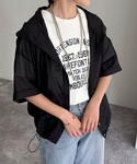 miura(FG women's EC)のシャツ/ブラウス「シアーフーディハーフスリーブシャツ」を使ったコーディネート