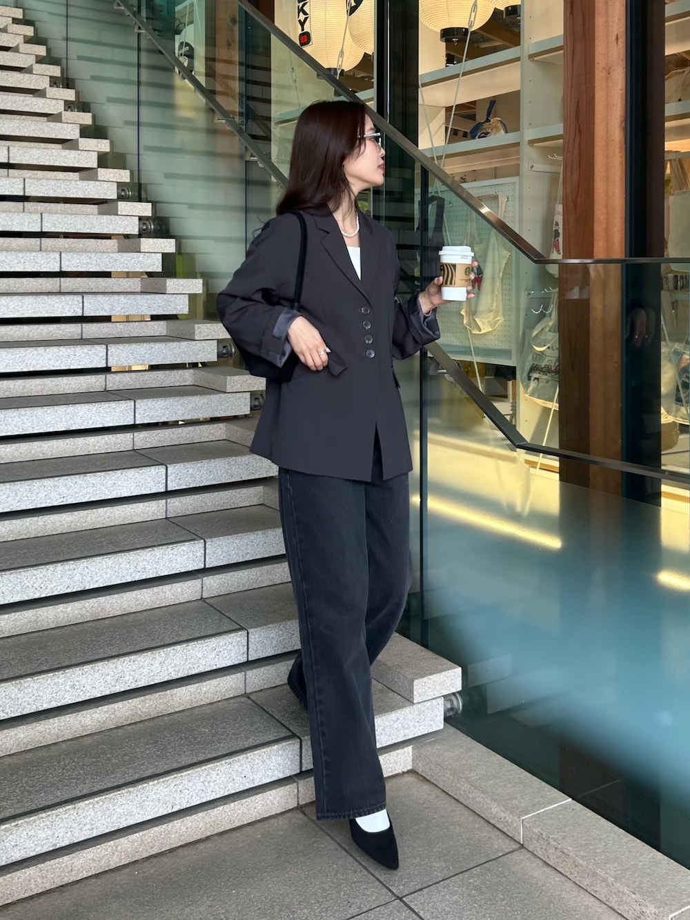シングルオーバーテーラードジャケット ▶︎ゆるっとしたシルエットが可愛い シングルテーラードジャケット 厚手すぎず軽やかな着心地です◎ フロントのボタンデザインがお気に入り✨ ベーシックストレートデニム ▶︎大人気デニムパンツがリバイバルで 登場しました! 360度どこから見てもきれいに見える シルエットとサイズ感◎ ヒップラインがきれいに見えて 脚長効果も抜群です