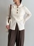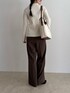センタースリット衿つきプルオーバー ▶︎すっきりとしたシルエットのニット タックインせずにスリットを見せて着るのが お気に入りです✨ サラッとしていて着心地も◎ とろみツイルタックスラックス →落ち感があり上品かつ抜け感のある印象に 仕上げてくれます✨ 後ろがゴムなので締め付け感もなく リラックス感のある履き心地です◎ 新色のブラウンを履いてみました!