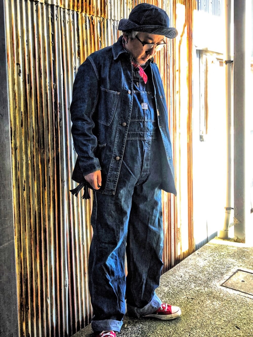 ご覧頂きありがとうございます。 ポカポカ陽気ですね。薄着でも大丈夫。 今日は、珍しくビンテージのワーク系にしました。古着屋時代は毎日こんな服装でしたので、昔からボクを知っている人には、こんなスタイルの方がイメージ通りなのかもしれませんが…。 アイテム解説です。 ハットは1940年代のU.S.ARMYデニムハット。今日は白ステッチの方。黒のステッチの物も持っています。2つともデッドストックだった物を30年程前から時々被る程度なので、状態は良いです。 カバーオールとオーバーオールは、アメリカのストアブランドの物です。SUPER OX HIDEの1930年代上下セット。オーバーオールは、それなりに今でもビンテージを所有していますが、上下セットで同年代の物はこれだけです。 手持ちの一番古いオーバーオールは1920年代のPAY DAYですが、この当時は本当に作業着だったので普段着るには危険な状態です(苦笑) デッドストックで見つかったり、程度の良い物なら普通に着られるのでしょうが、この辺りもレプリカで良いかなと思ったりします。 バンダナはビンテージのペイズリー柄。これはたまたま色違いで黄色も持っています。生地の感じ、染と抜き共に実物見たら好きな人にはたまらないかと(笑) スニーカーは、コンバースの1940年代の復刻モノの赤。白のローカットと黒のハイカットは前に何度か登場していますが、赤は今回がはじめてかもしれません。 年代的にはブーツとか革靴の方がスタイルとして正解なのかもしれませんが、そこまでゴリゴリにしてもアレかと思いスニーカーにしました。 ホントはシャツもビンテージのシャンブレーシャツにしたかったのですが、もう手元には着られる物がないので、シュガーケーンのシャンブレーシャツに。 最近は、よく出来たレプリカも多いし、そういったアイテムと組み合わせて着るのも楽しみですよね。 古いスタイルも好きですが、新しい服も好きなので色々楽しめたらと思います。なんせ、21世紀に生きてるのに、今の流行も楽しまないともったいないです。 ボクは、感覚とやらで洋服を着る人ではないので、意外と頭硬いです(笑)だから、ジャケットやベストなどのボタンの掛け方なんかが気になるタイプです。ネクタイのディンプルの作り方とか…。 その辺りにその人の力量が見えてしまうかなと。まぁ興味のない人は別に気にもしなくて良い話ですね。 長くなりましたね。 では、また!