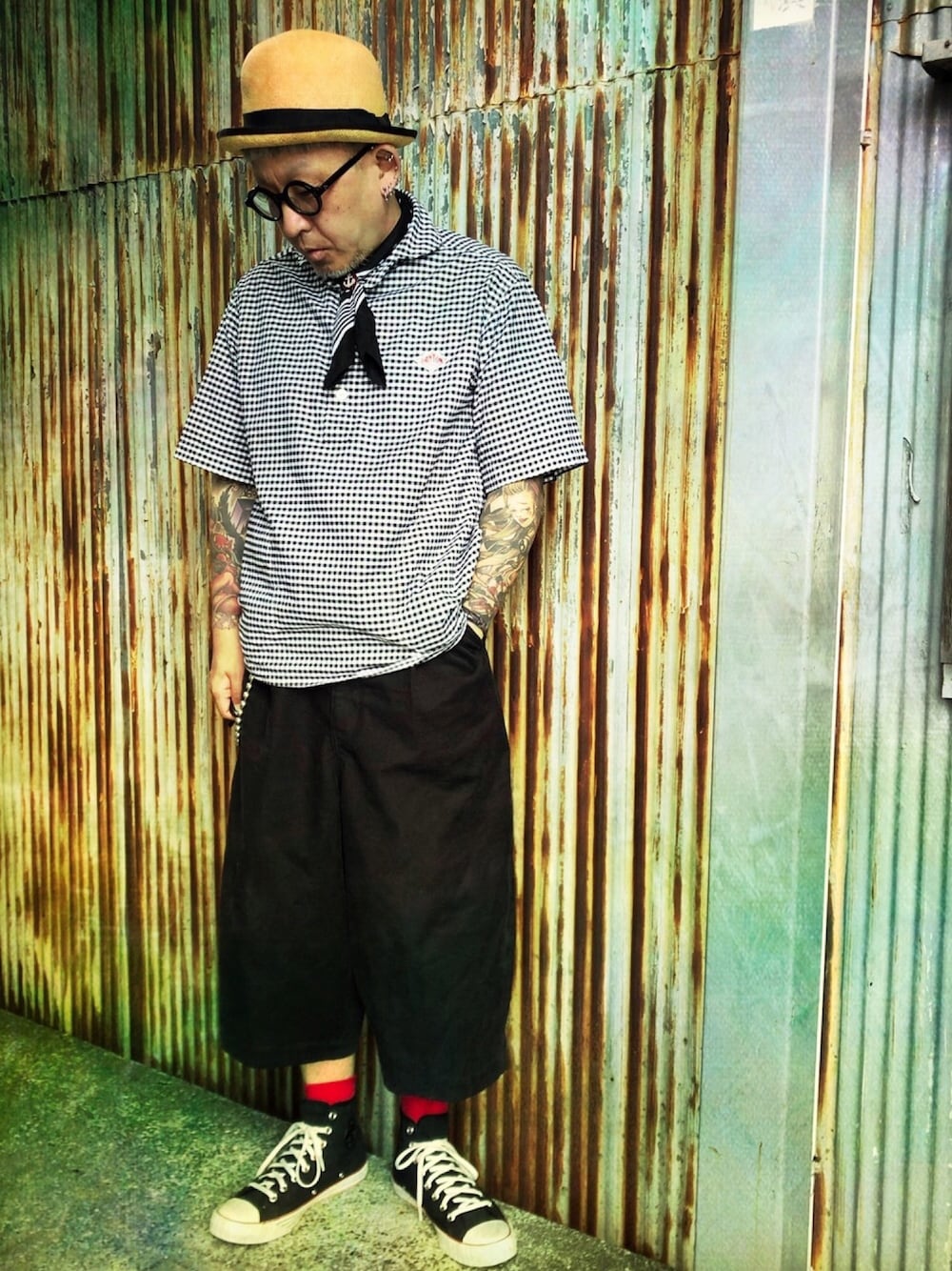 ご覧頂きありがとうございます。 今日は浜松Swingの練習会です。その前に商店街のお祭りでお友達のアコーディオンデュオが演奏するので、それを観てから行こうかと少し早い目に家を出ました。 彼女たちの衣装が冬のベレー帽からストローハットに変わったので、それに合わせてビームスボーイ(cableとのコラボ)のボーラーハットにしました。 普段のボクなら確実に黒系のソックスですが、今日はなんとなく赤。ヨージとかギャルソン好きな人がよくやる配色ですね(笑) では!また。楽しんできます。