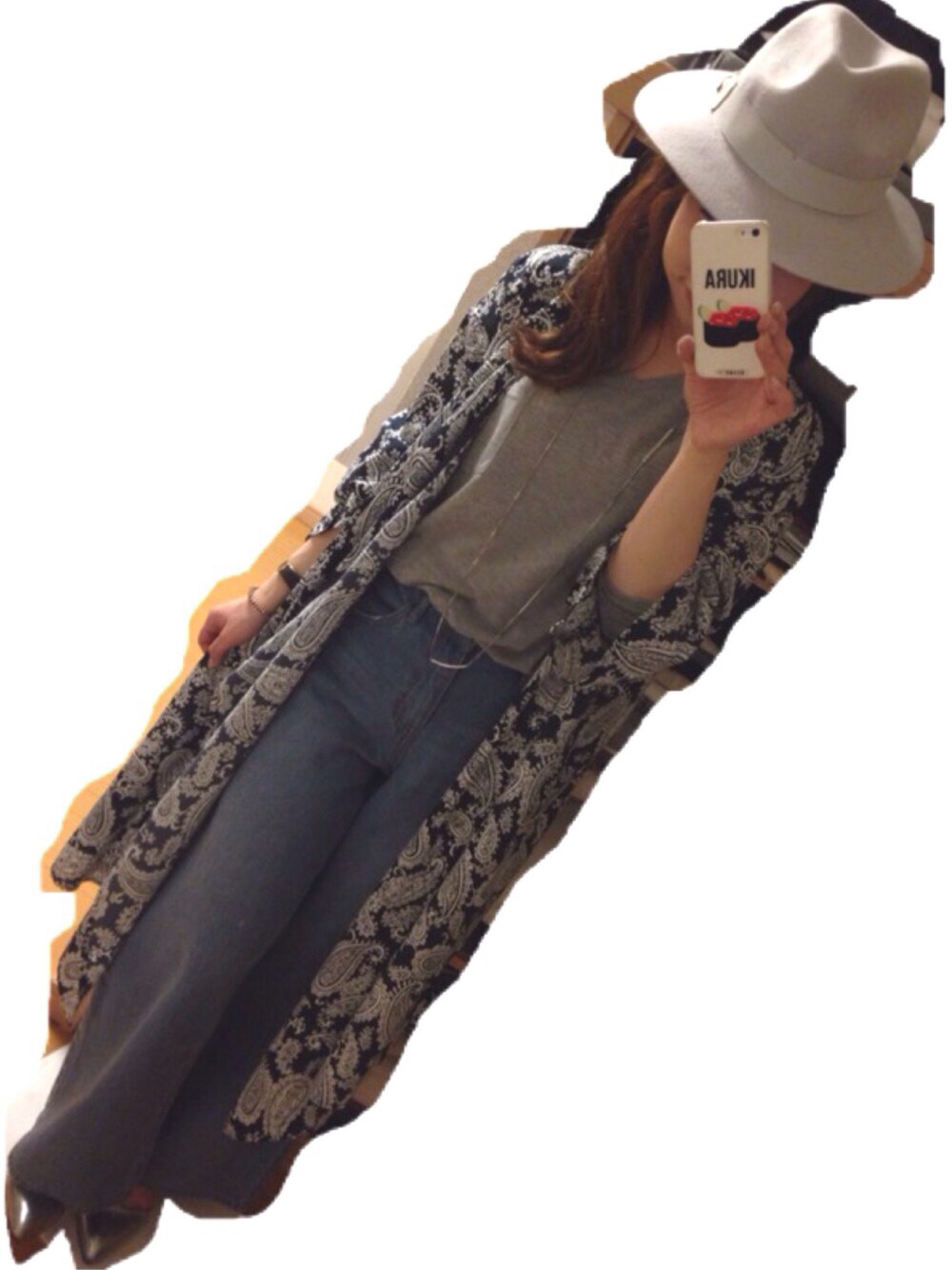 ペイズリー柄のワンピースを羽織りで着てみましたコーデ。
