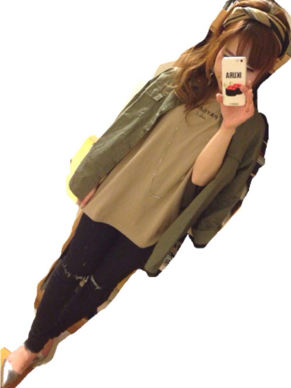 大人ミリタリーなコーデ。 スカーフをヘッドアクセとして使ってみました(^^)