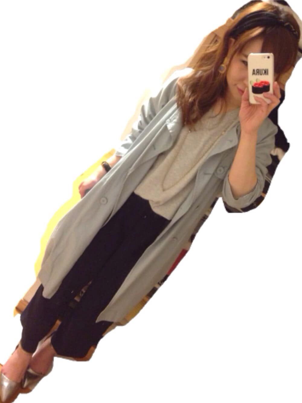 出勤コーデ。 水色のノーカラートレンチが主役級の可愛さです(^^) 数年前に購入したモノですが、今年もまだまだ活躍してくれそうです。
