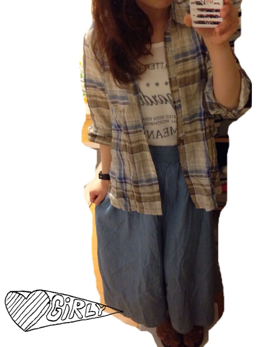 今日わ暑いので、 爽やかカラーのチェックシャツに プリントTシャツ ガウチョパンツ を合わせました。 足元わ動きやすい ぺたんこサンダルです。 もうすぐ夏ですね。 生脚+サンダル なんだかウキウキする 今日この頃です^ ^*