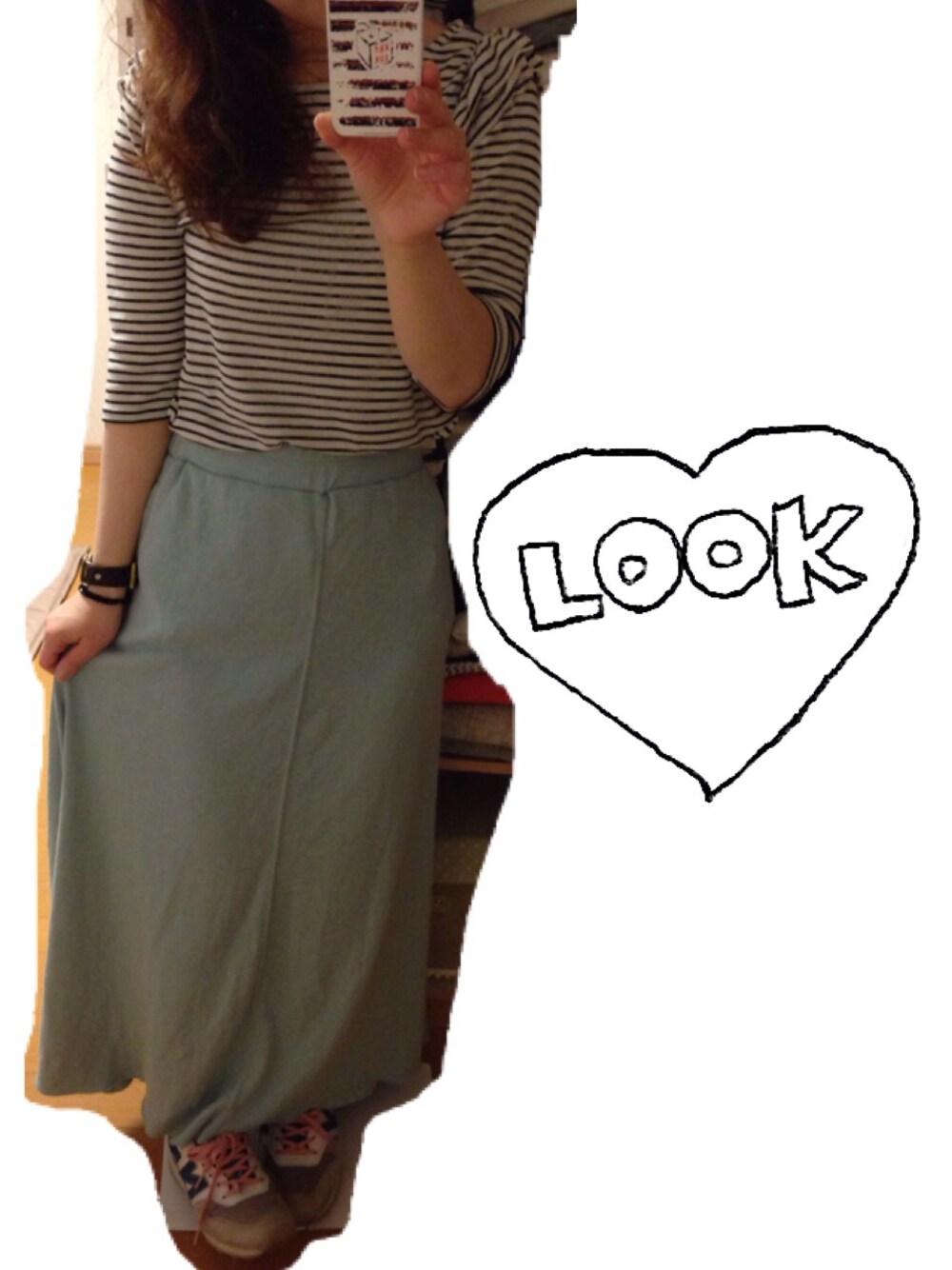 本日の主役わ ミントグリーンのロングスカート。 カット地なのでとっても動きやすい。 スニーカーと合わせて ざ アクティブがーる← 7分袖のカットソー 見えにくいけど 肩にフリルがついてます。 かわいいんだな♡