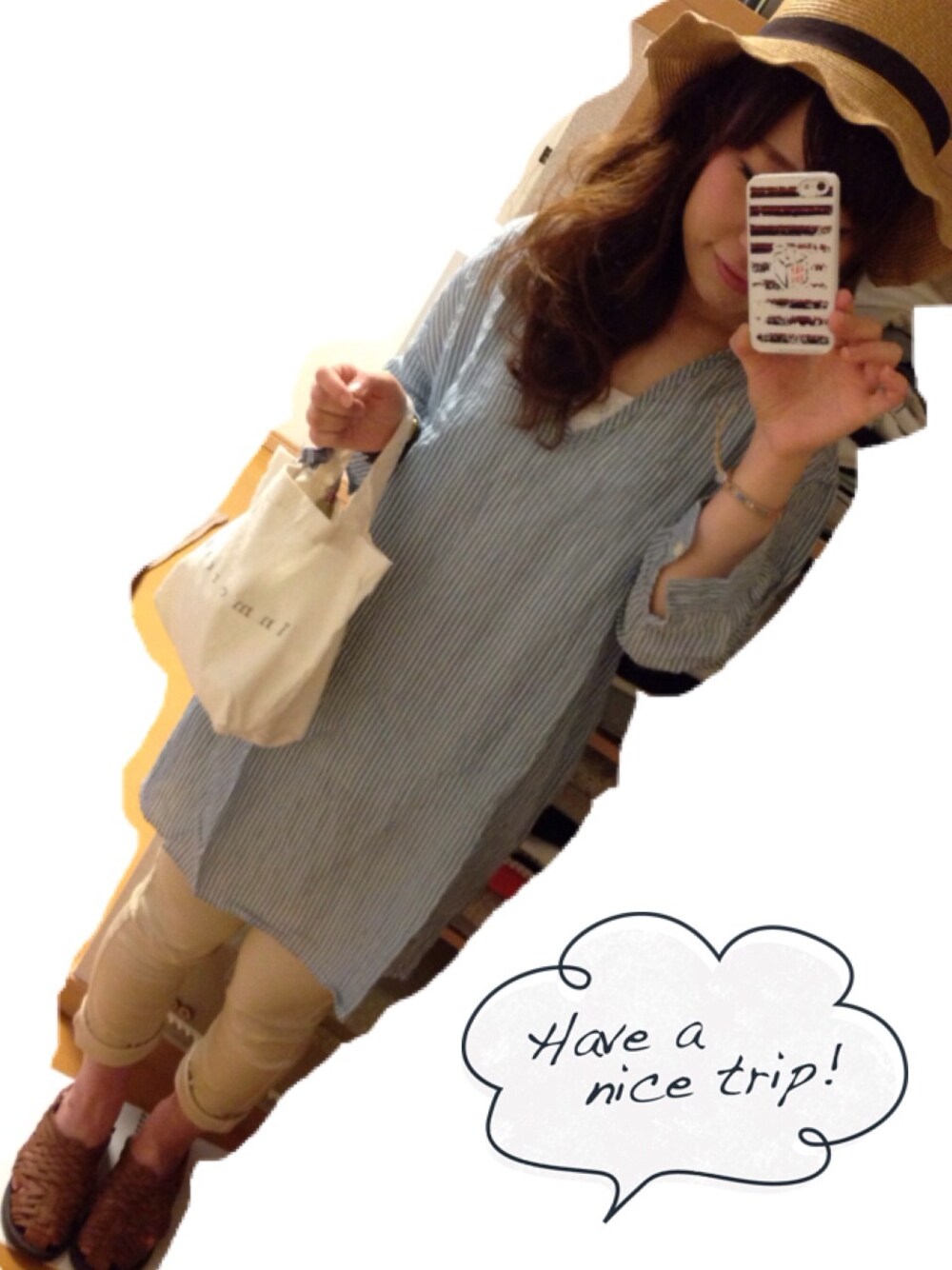 チュニックシャツが着たくて こんなコーデになりました。 途中で 何か足りない、足りない! と思い久々にツバ広帽かぶりました。 そして今わ無きpointサンのブランド 【inmercanto】:インメルカート の布帛ミニバックを持ちました。 よく見るとチェックのリボンと 数字の入ったプレートが付いているんです。 こー言う細かい所までお洒落な感じ、 とても好きです^ ^