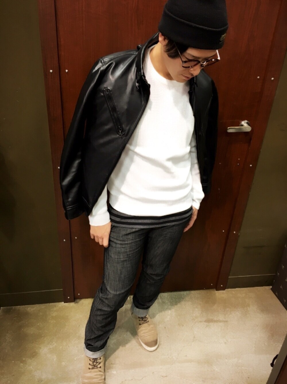 こんばんは〜😘 いつもイイね♡フォロー✨SAVE👆とたくさんありがとうございます😊❤️ 今日も寒いですよね〜😵 こんな寒い日は、こたつに入って、ゴロゴロしたい😍と常々感じちゃいます😘 さて今日のコーディネートは、これから春先までつかえる、ライダースを着こなしてみました✨✨ 合皮のライダースですが、ラムレザー調に仕上げてるので、高級感😊あります❤️男らしいです🤘