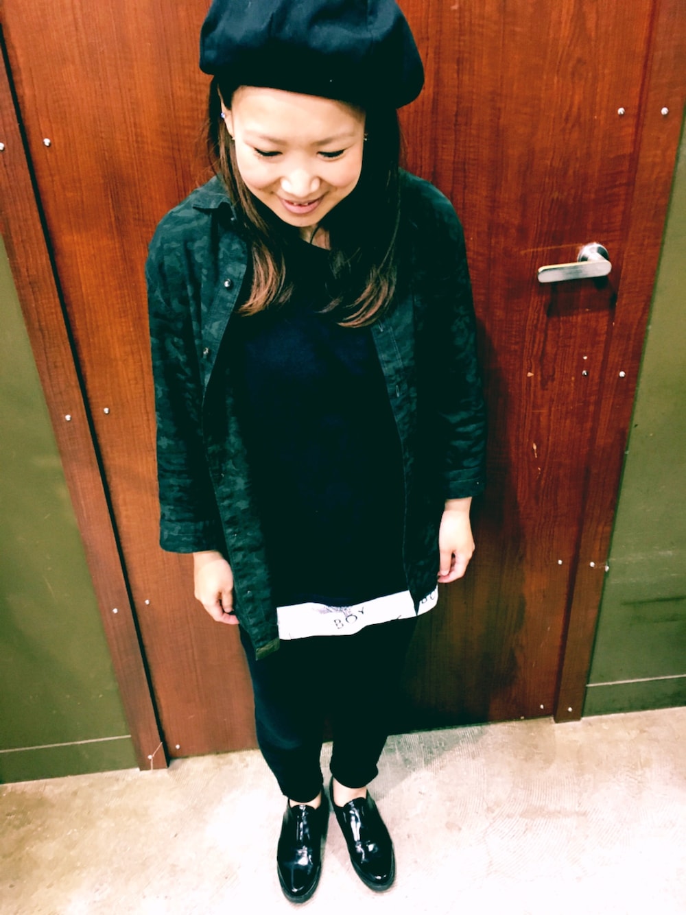 こんにちは🌞 いつもイイね♡フォロー✨SAVE👆とありがとうございます❤️ 最近黒色が落ち着く🌚そんな今日のコーディネートです✨✨ 真っ黒と見せかけての、カーキのシャツで色みを出してみました😘しかも、カモフラ柄なんですよ😎カッコいい感じ大好き💕 メンズの七分袖シャツなんですけど、私が着たら長袖ww自分あるあるです笑😂 Lサイズで、オーバーサイズ目にしてみました😋 さて、しばらく部屋の掃除できてなかったので、今日のお休みは、部屋掃除です💪
