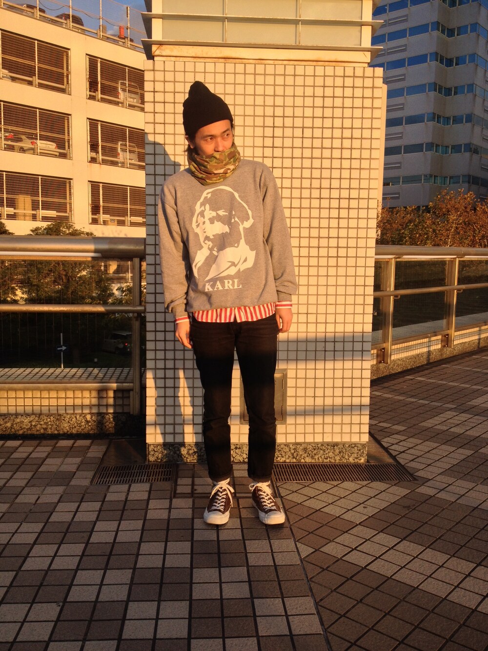 西陽がまぶし。 ストール:STUSSY スウェット:AFFA