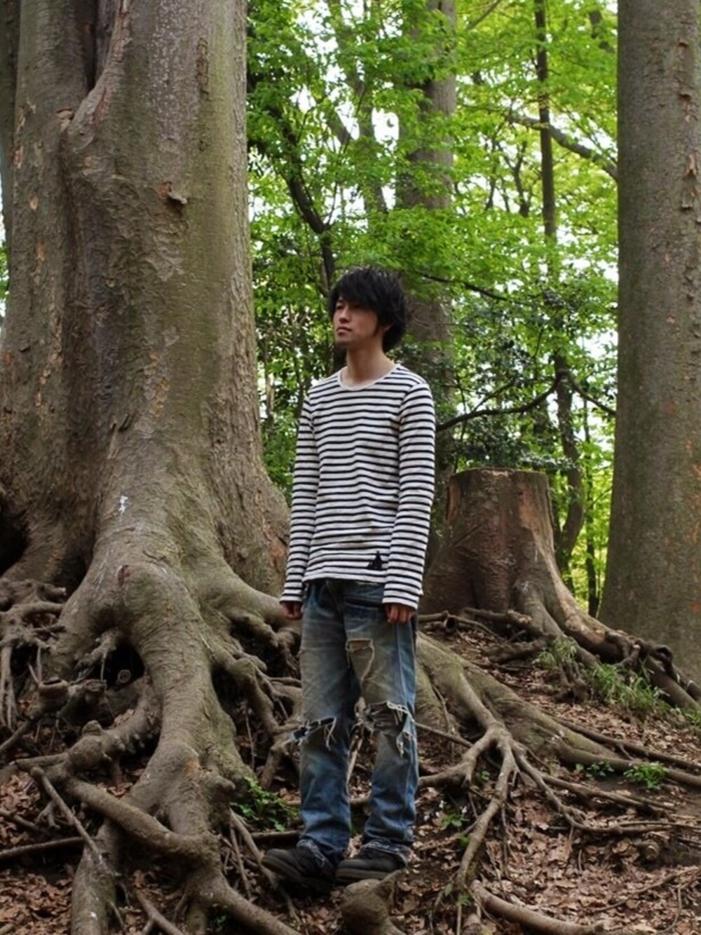 代々木公園。 デニムはrebirthのフリーバイスデニム04 なんと全ポケットに穴が空いている。