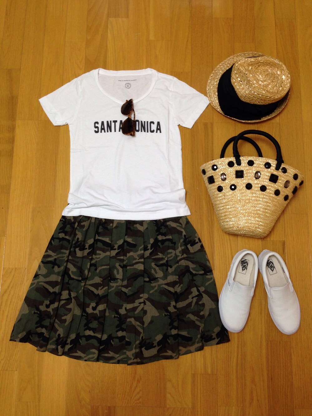 戦利品がうれしすぎて、 ボトムと靴だけちぇんじde連投。 カモ柄、大好きっ! (pq´v`*)♡ あっちーから、 腰巻きもなんもなし。 あえてシンプルに。 お帽子が、でっかいおリボンついてはるもんで、あえてスリッポンではずす。 意外となんでも合うかも。 この帽子もバッグも♡ サングラス_urban research doors