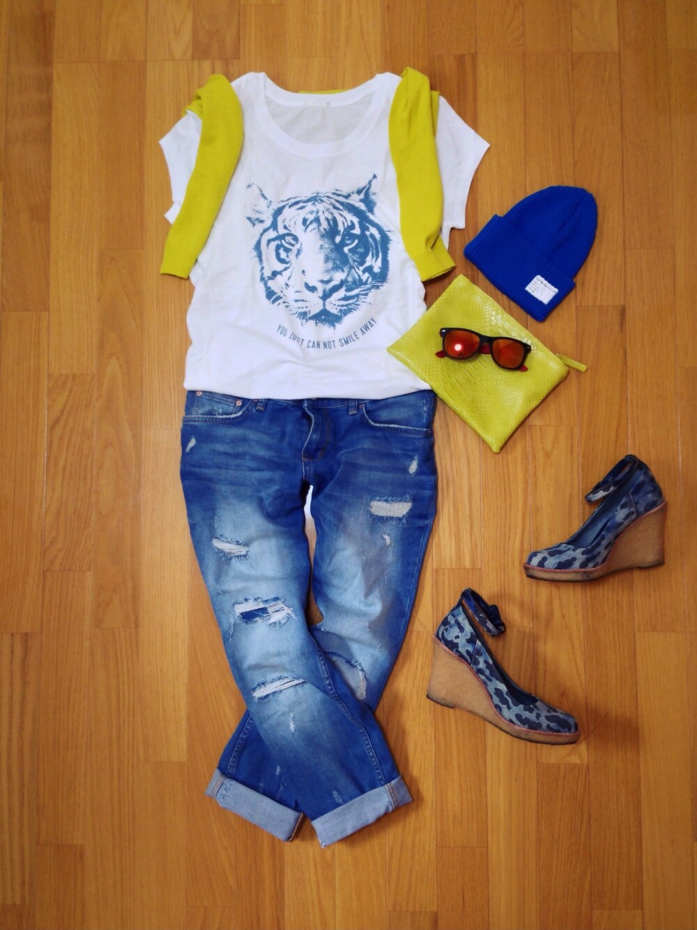 土曜日に飲んだ赤ワインのステイン?が 唇についたまま落ちないー( ¯ ¨̯ ¯̥̥ ) 歳だな。 唇も。 あんま、プリントTって 持ってないんだけど GUで安いのでチャレンジ! バッグなんも入らないけど ビタミンカラーがお気に入り♡ サングラス_GU デニム_ZARA