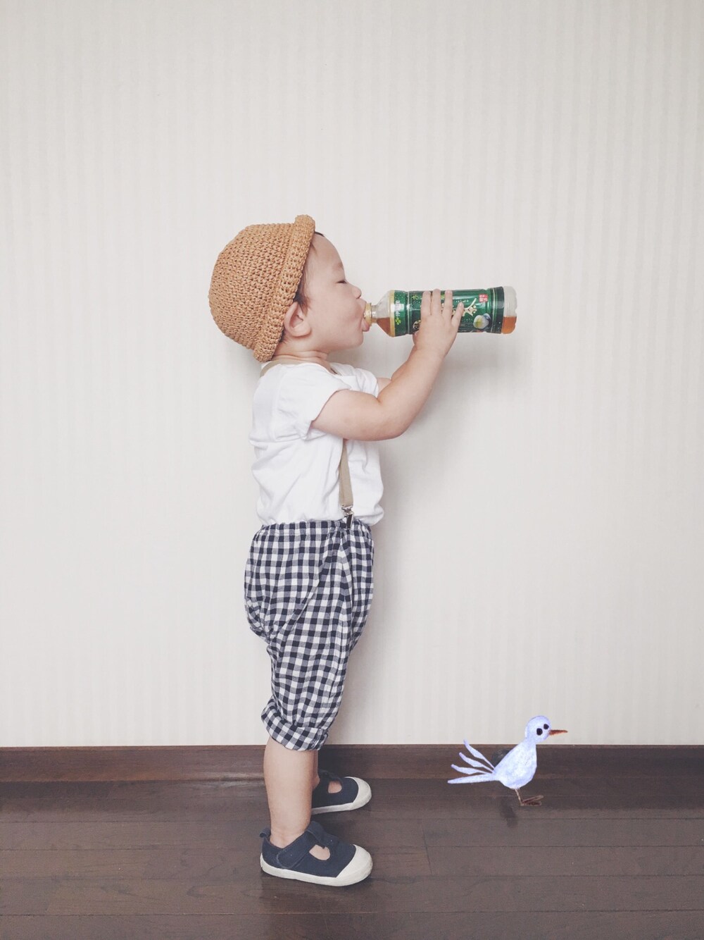 コップじゃなくて どーしてもペットボトルで飲みたがるひと◎ チェックパンツをgetできたので、 可愛くてオシャレすぎるhi-ちゃんみたいに サスペンダーで\(◡̈)/♥︎