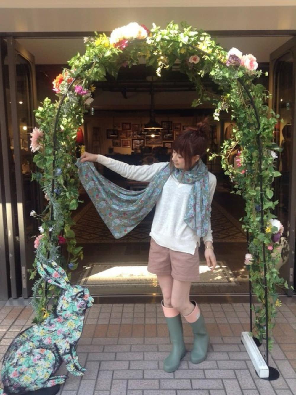 花柄ストールはシンプルなコーデのアクセントに。シフォン風のフンワリ感♬
