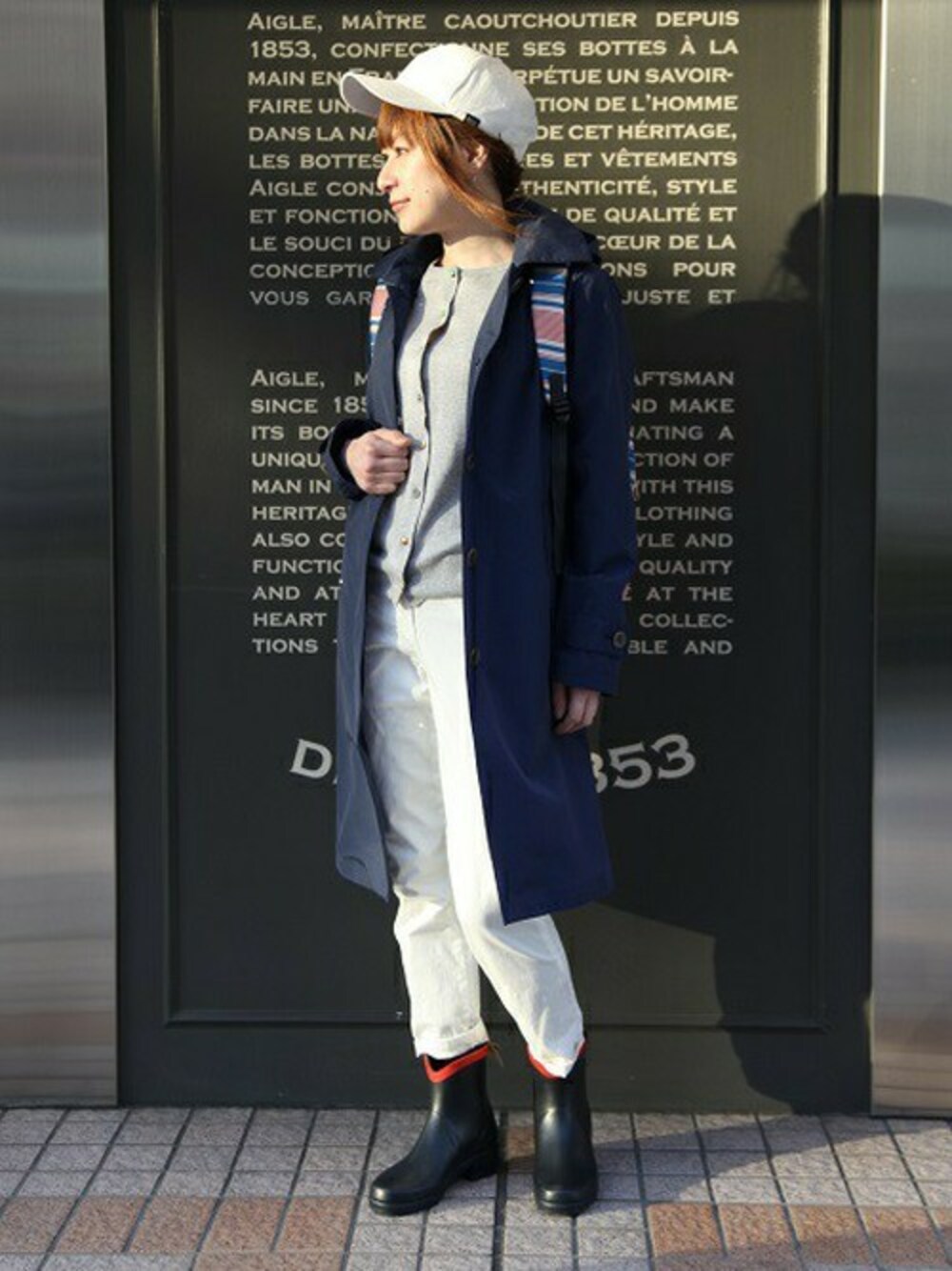 ボーイッシュなマリンスタイル。 ゴアテックスのステンカラーコートが普段着でも必要に身を守ってくれる心強いアイテム!