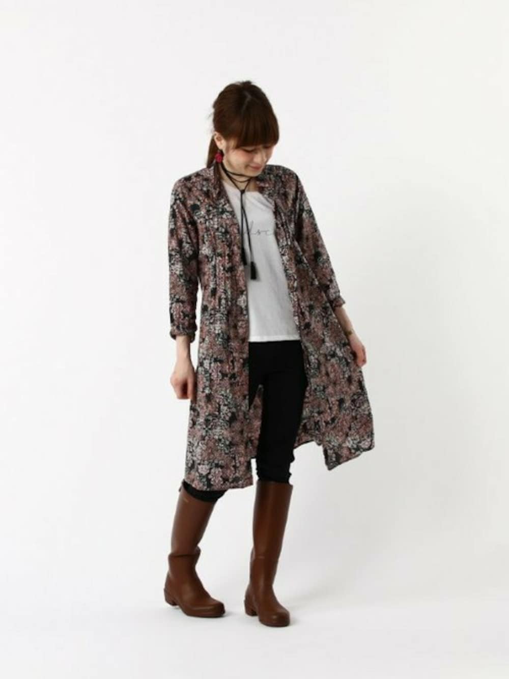 シャツワンピースを羽織りで。 リバティの花柄が女性らしさを演出します🌸 着回しバツグンのマストアイテムですね!