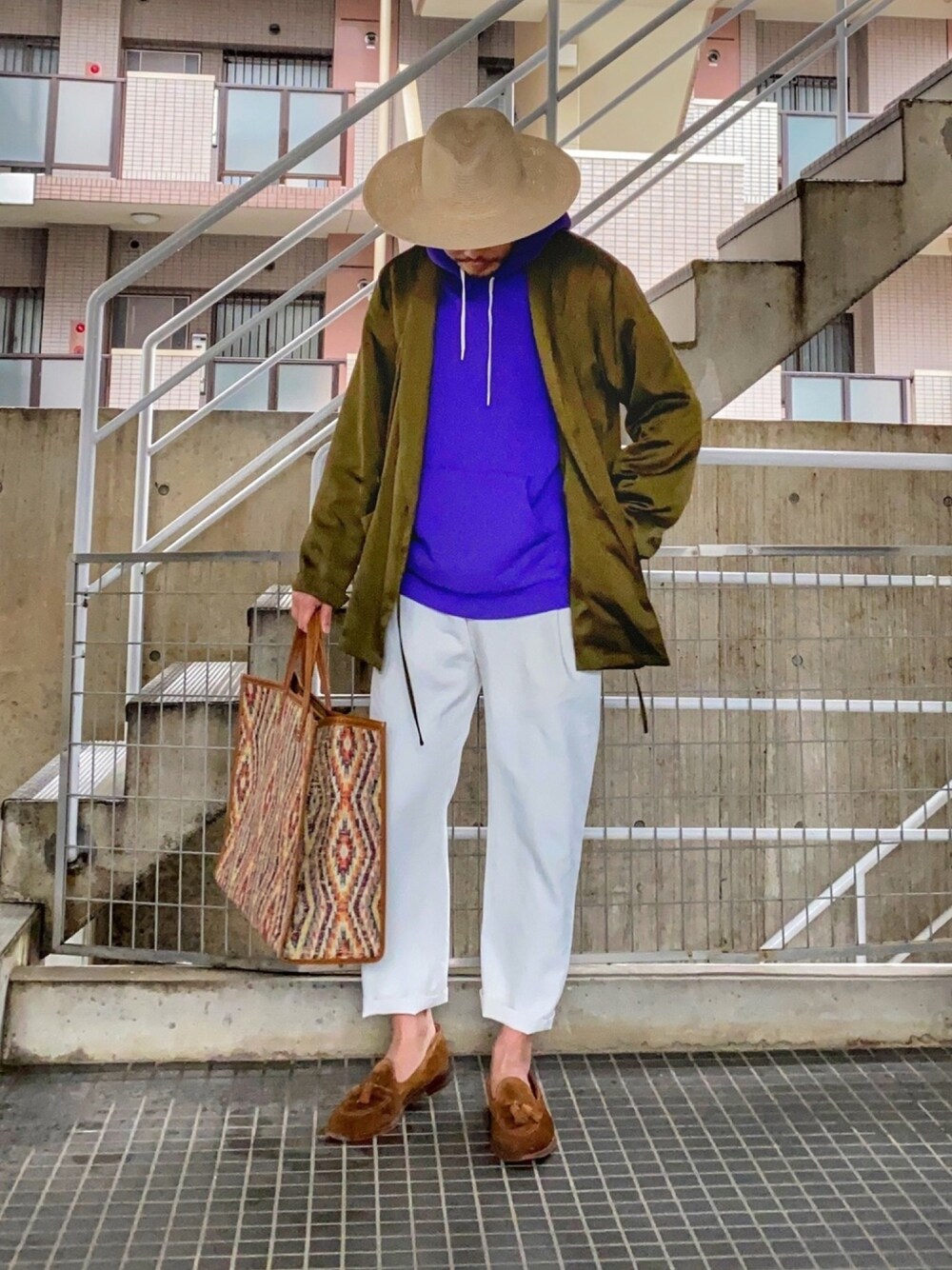 jun oyaのトートバッグ「<A VACATION(ア バケーション)>TANK MALACA バッグ」を使ったコーディネート