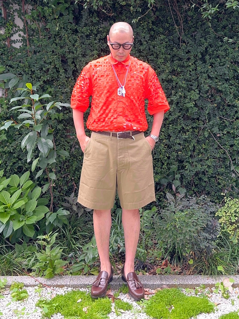 Summer is here☀️ 少し前のコーデの真夏版! チノショーツはプレッピースタイにもカジュアルスタイルにもハマるので1本あると便利
