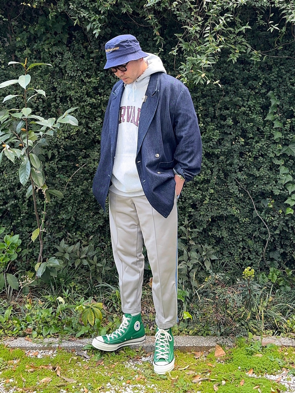 Sometimes tracksuit pants are good too👍 スウェット+ジャージパンツコーデは気軽なディナーには抜群! でもジャケットを羽織ってフォーマル感はあると良いね!!