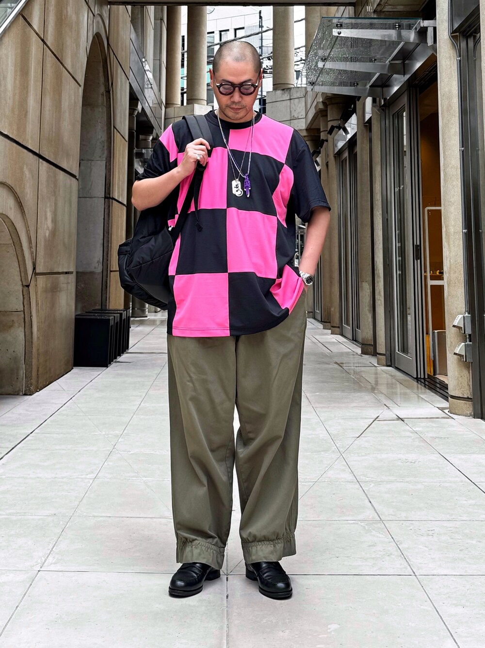 Pink and khaki color is best combination 👍 フリマ、古着屋巡り等の大量購入の可能性がある時はコムデギャルソンの巨大バックパックが大活躍✨