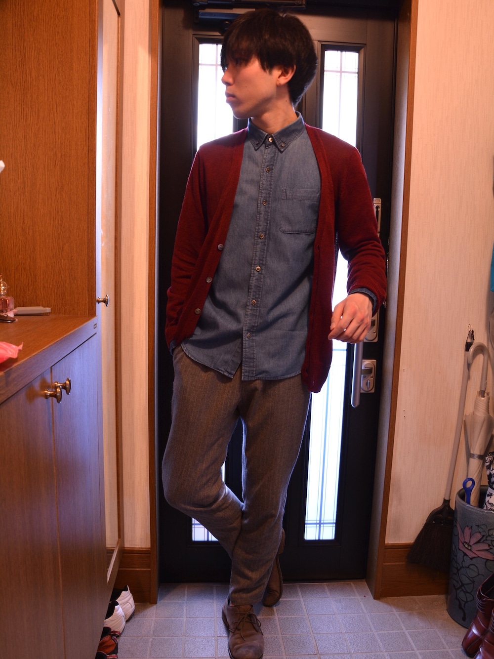 赤と青で分けたキレイめカジュアルコーデですd(^_^o) クレリックシャツでデニム生地は珍しいし、カジュアルにもキレイめにも使えるので重宝しております✨ いつもいいねありがとうございます♪