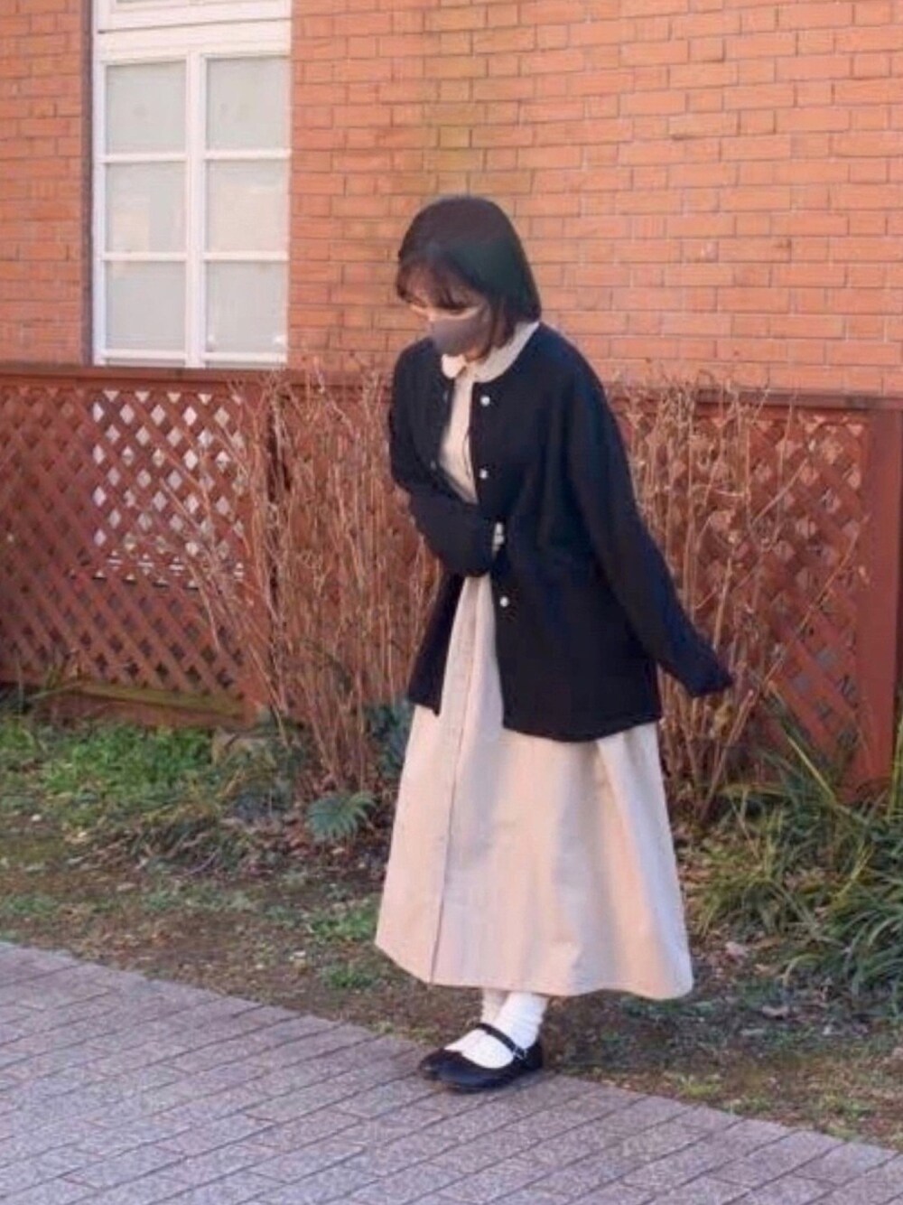 FASHIRUのワンピースで 2コーデ目🌿 カーディガンにするだけで だいぶ雰囲気かわりますね😳