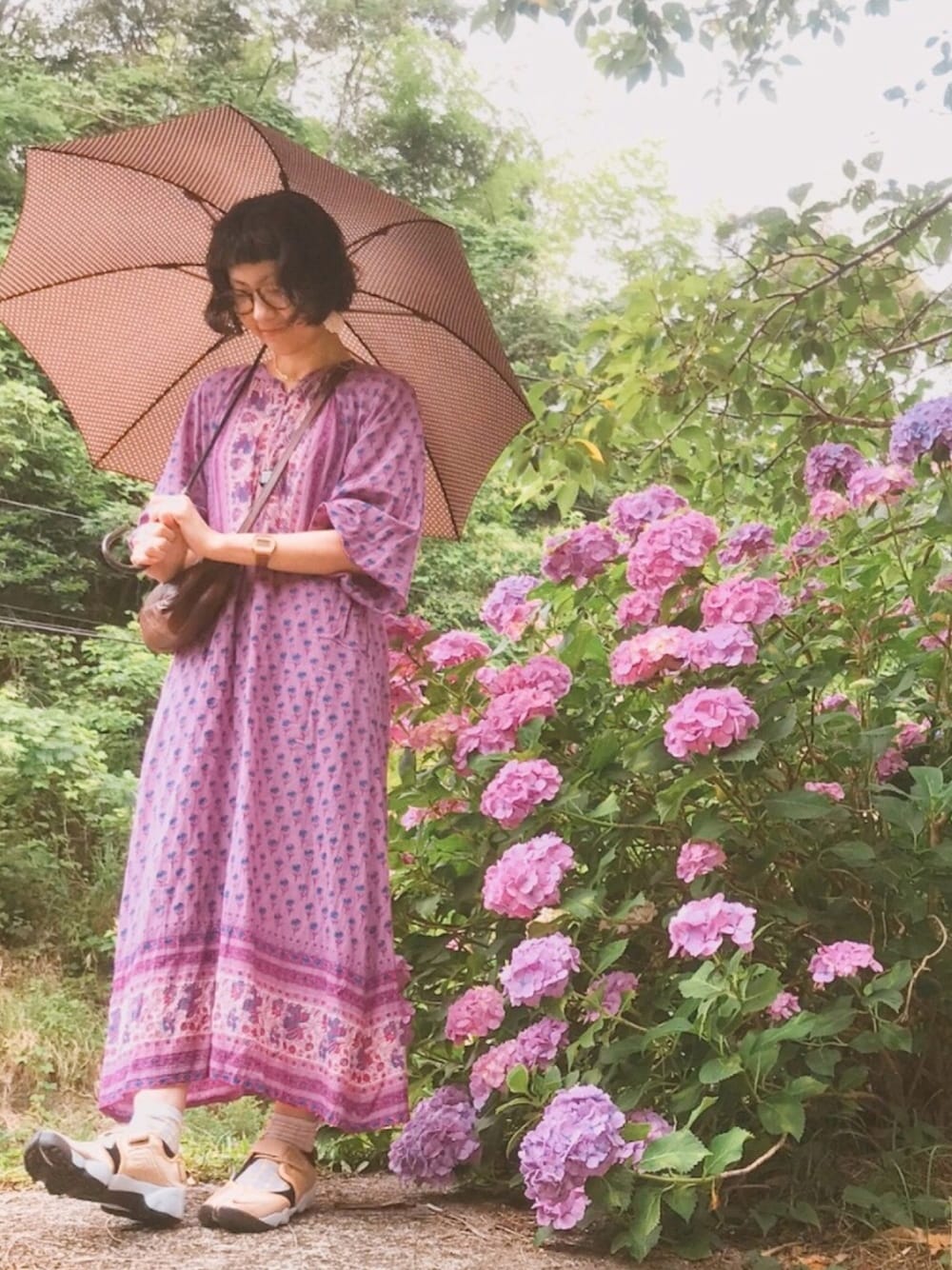 今日は紫陽花を観に行ってきました。 久しぶりに雨がが降ったので、雨に濡れた紫陽花がより鮮やかで癒されました(*´ω`*) 今日のぱげコデ☆ エスニックが夏らしいシャツワンピをメインに♡