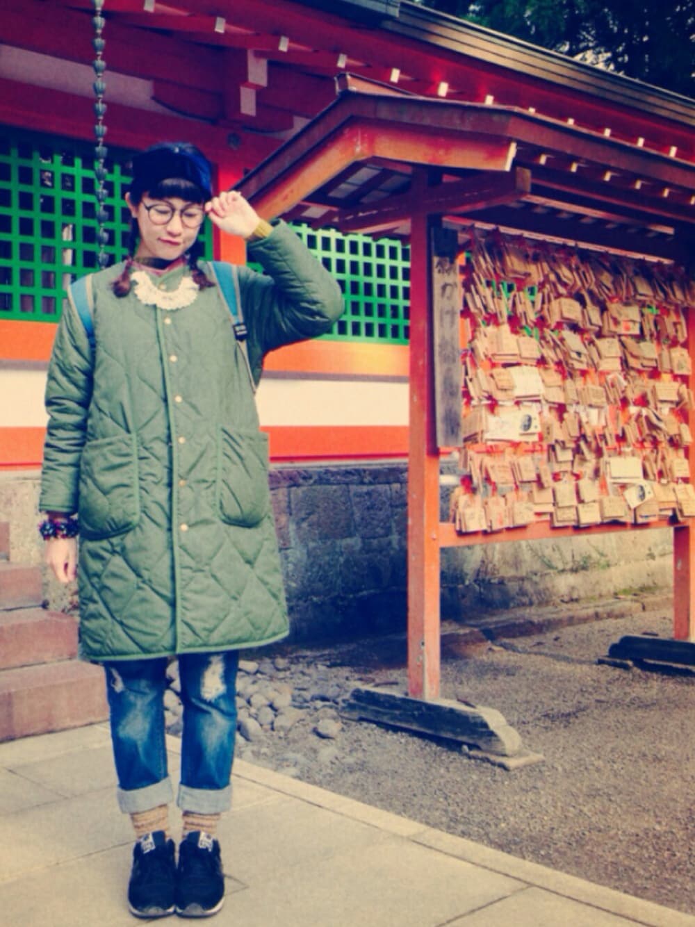 今日はドライブがてら日帰りで実家へ帰省♩♩♩ 途中、某神宮へお参りに行ってきました。 休憩所でぜんざいも食べてポカポカです☆*:.。. o(≧▽≦)o .。.:*☆ 今日のぱげコデ☆ 某神宮は山の上にあるのでリバーシブルコートでぬくぽかコデです♡