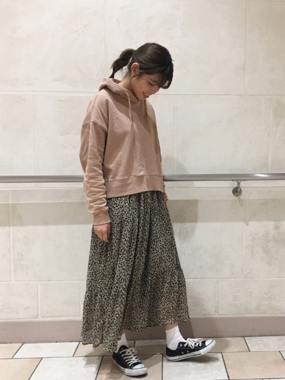 パーカーにスカートスタイルが1番楽です👒 instagram🔎lnrn.515