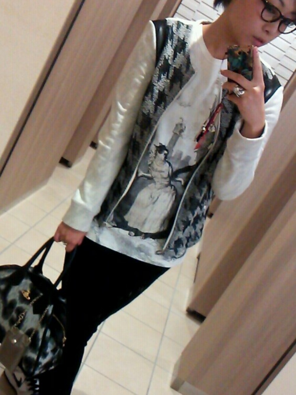pants/自店 朝からジムに行ってきました サクッと着られるこの千鳥柄の羽織は 重宝しております