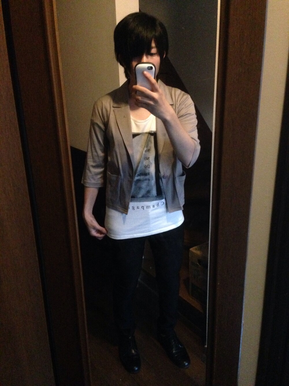 バンドTたくさん持ってるんで! ここから大放出!!!(笑) まずは[champagne]のTシャツ( ‾ ∇ ‾ ) それにショートジャケット合わせて 下はクロのスキニーでキチッと仕上げました! このジャケットお気に入りなんですけど、どうですかね?(笑)