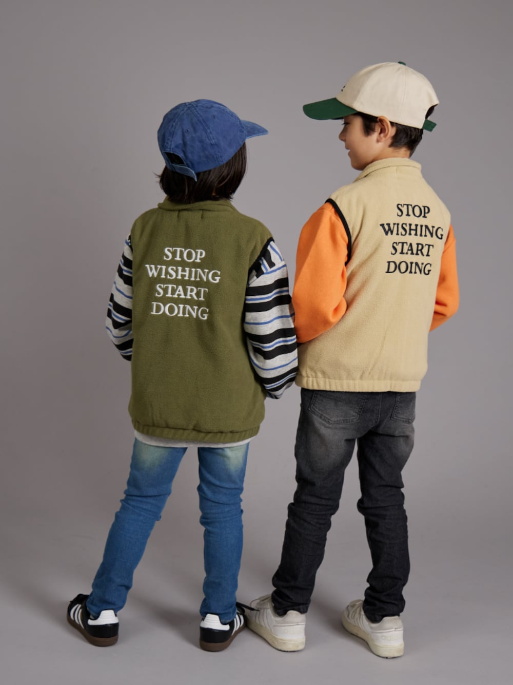 【PAIRMANON STREET】バック刺繍 マイクロフリース ベスト ■左モデルサイズ:113cm 着用サイズ:130 右モデルサイズ:125cm 着用サイズ:120