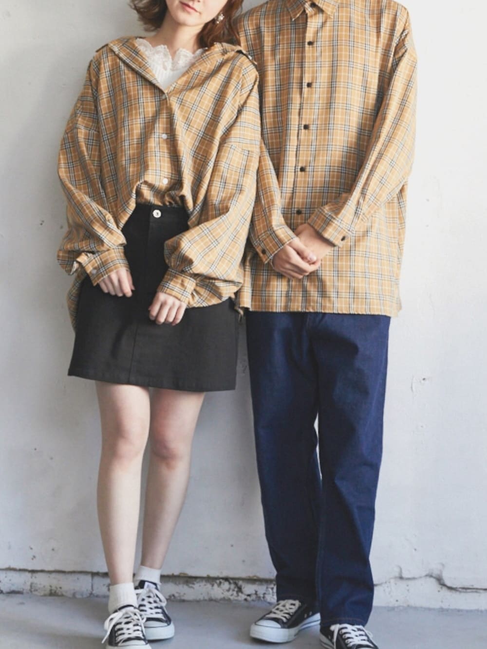pairpairのシャツ/ブラウス「チェック柄袖バルーンBIGシャツ」を使ったコーディネート