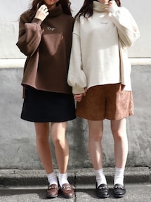 <10/24発売> 裏起毛オフタートルニットの ライトベージュとブラウンコーデ✨