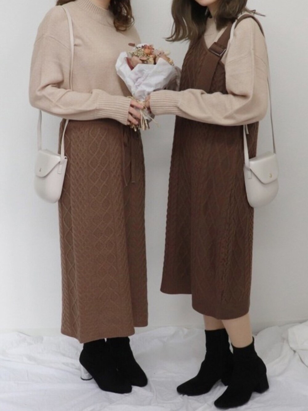 ハイネック袖ボリュームニットを使用したコーデ✨ ラテカラー展開なのでワントーンコーデにオススメ☕️