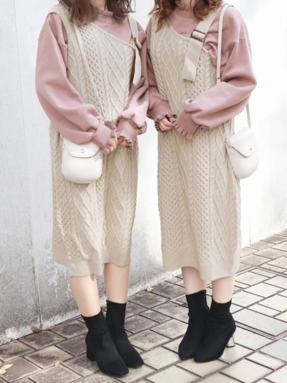 ワンショルニットジャンスカを使用したコーデ💓 ケーブル編みなのでこれからの季節にぴったり☃️
