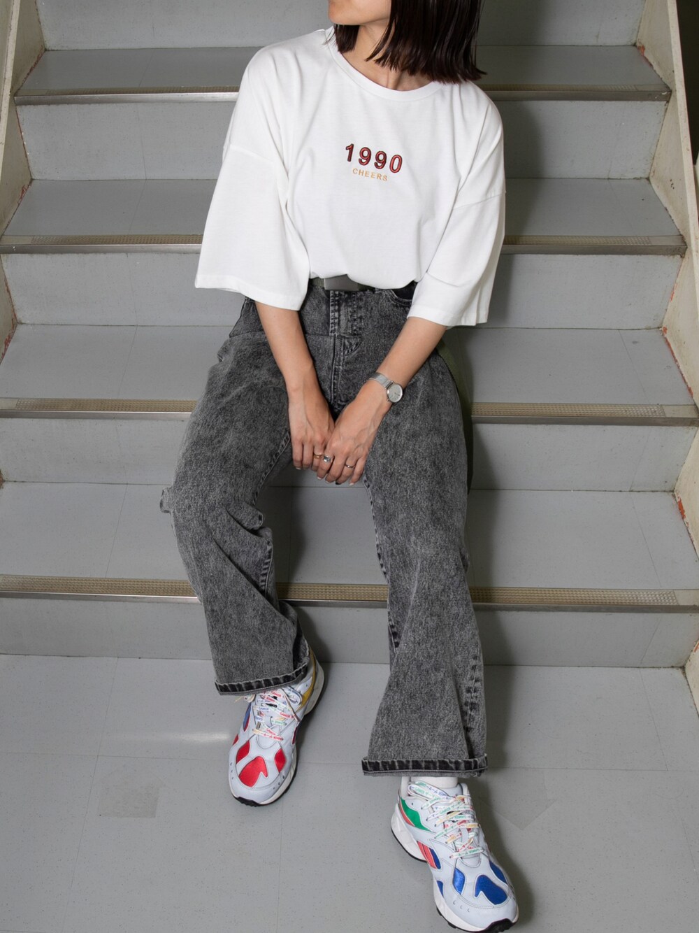 白T×デニムにガチャベルトをプラスして THE90年代なコーデ💚🧡