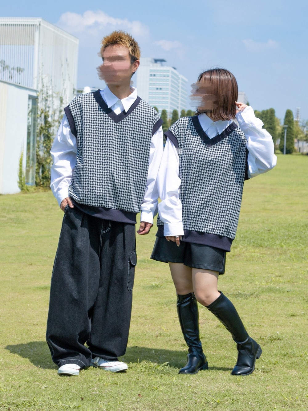 今っぽい千鳥柄のベストコーデ‼️