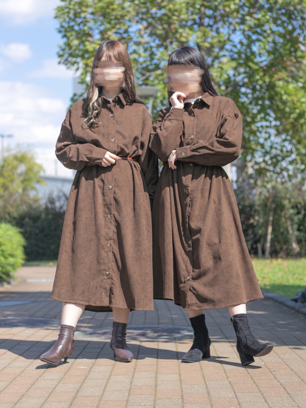 コーデュロイ素材で楽かわなワンピースコーデ🧸