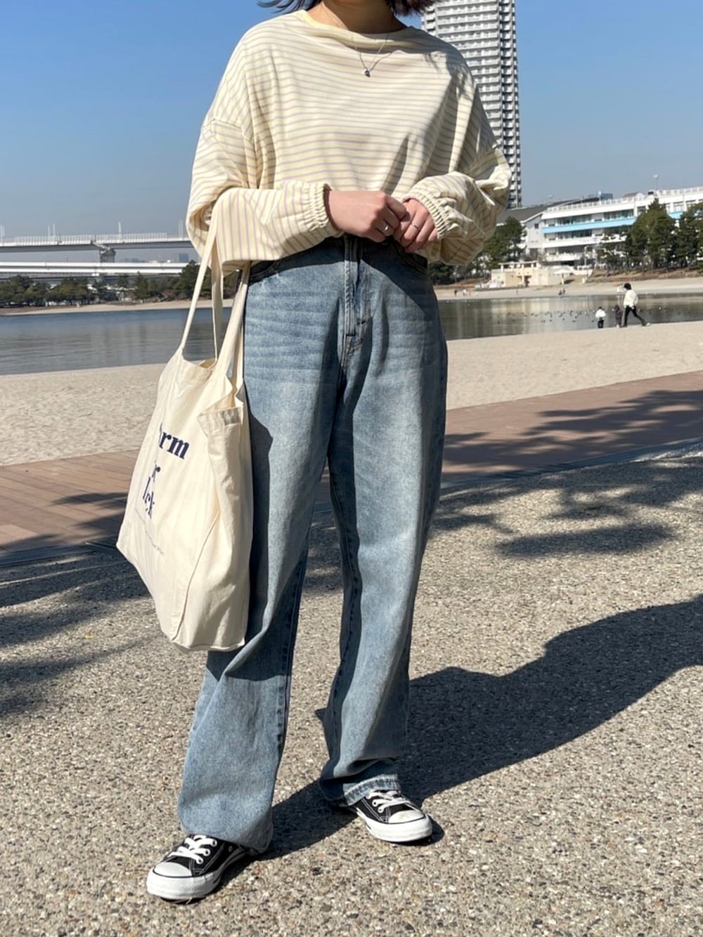 ご覧いただきありがとうございます! 昨日発売のボーダーロンT、イエローを使ったコーデ🌟パステルがカワイイ😽
