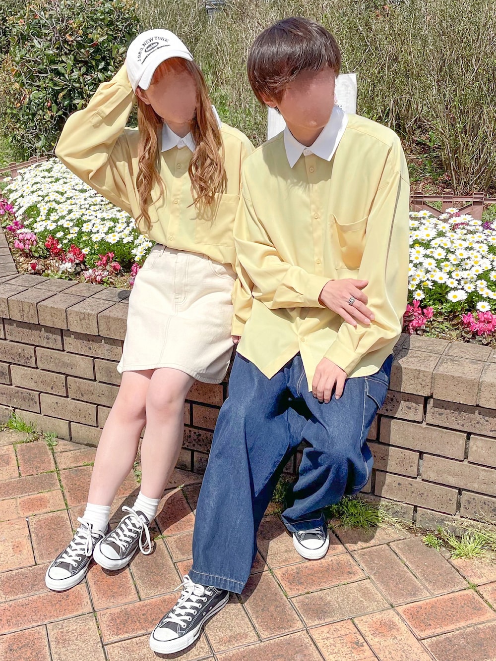 ご覧いただきありがとうございます☺︎ 春らしいイエローのシャツを使ったコーデ🌟